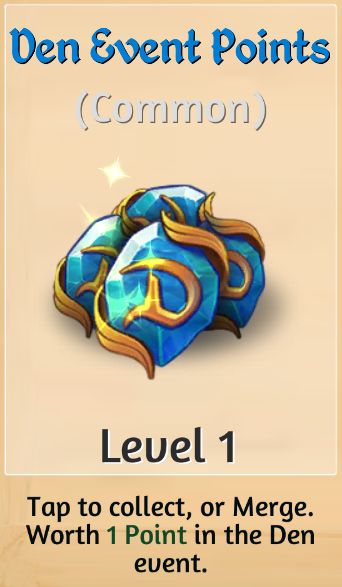 Merge dragons den event points. Unlike the merging dynamic of the in-Camp Events in Den Events the amount of points you receive per merge is determined not by items quantity but by their level. Unlike the merging dynamic of the in-Camp Events in Den Events the amount of points you receive per merge is determined not by items quantity but by their level. For example in the image above for 30 minutes you could Merge Life Orbs for more points.